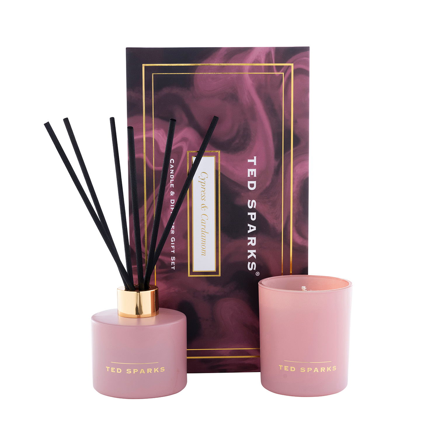 Met de warme rood en gouden details voeg je direct een sfeervolle accessoire toe aan je interieur. De Ted Sparks geurkaars heeft 1 lont, is gemaakt van gemixte soja was en heeft een brandtijd van 30 uur. De Ted Sparks diffuser heeft een inhoud van 100 ml waarbij 8 fiber stokjes zijn inbegrepen. De diffuser geeft 30-45 dagen lang geurplezier af. De Ted Sparks Gift Set komt in een prachtige geschenkdoos en is het perfecte cadeau.