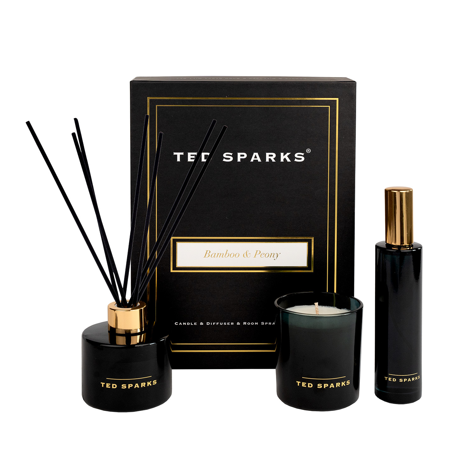 De Ted Sparks Candle, Diffuser & Room Spray Gift Set - Bamboo & Peony is een stijlvol cadeau om te geven, aan jezelf of iemand anders. De geurkaars en diffuser is de perfecte combinatie om een kamer te vullen met de Bamboo & Peony; een stijlvolle geur voor in huis voor iedere tijd van het jaar. Met een basis van bamboe en pioenroos wordt de geur aangevuld met een accent van poederachtige muskus en amber voor een betoverende aroma waar je urenlang van kunt genieten en het gevoel van thuis geeft.
