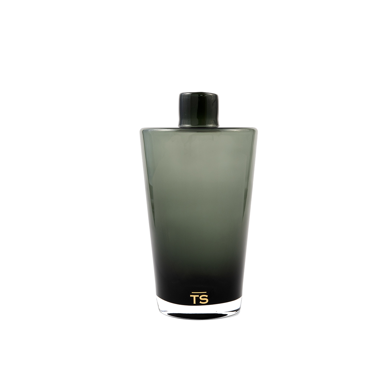De Ted Sparks Diffuser vaas 2L met geurstokjes is een prachtige showpiece voor in huis die je kunt vullen met jouw eigen favoriete geur. Zorgvuldig en handgemaakt van glas in de mysterieuze kleur 'smoky black'. De vaas is modern, elegant en heeft een tijdloos design dat in ieder soort interieur past. Een stijlvolle en rijke musthave voor op je tafel, schouw of kast. Het accent van de gouden TS van Ted Sparks staat voor een echt gevoel van luxe in eigen huis. Maak een statement met enkel en alleen de Ted Sparks Diffuser vaas of groepeer het met items uit de Ted Sparks collectie, zoals een bijpassende geurkaars.